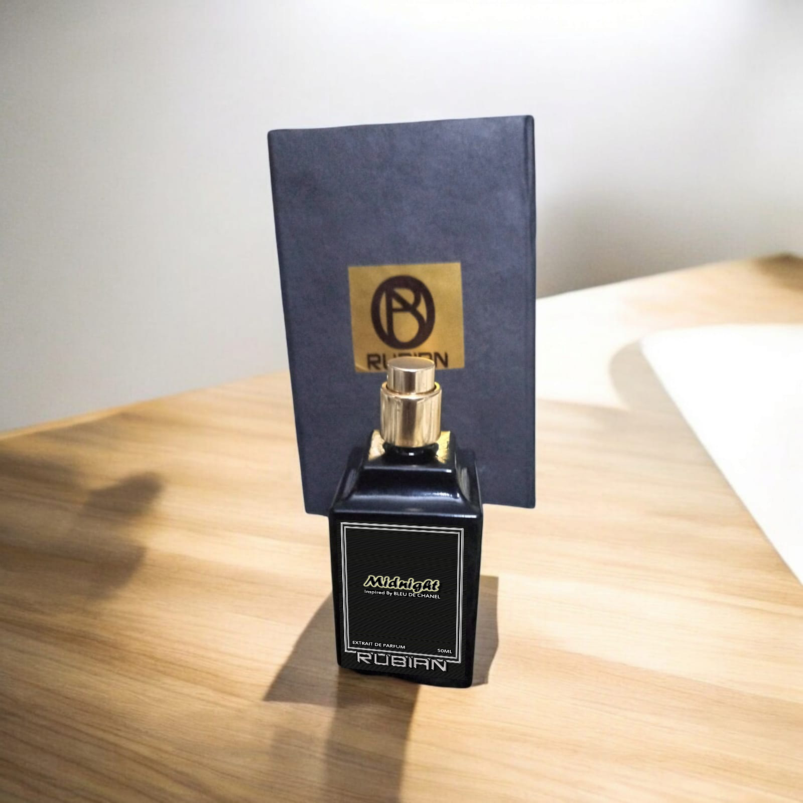 Midnight – Impression of Bleu De Chanel is a bold and sophisticated fragrance with fresh citrus, woody, and spicy notes. Its Extrait de Parfum concentration ensures exceptional longevity. Encased in a sleek 50ml bottle, it delivers a luxurious scent experience at an affordable price.