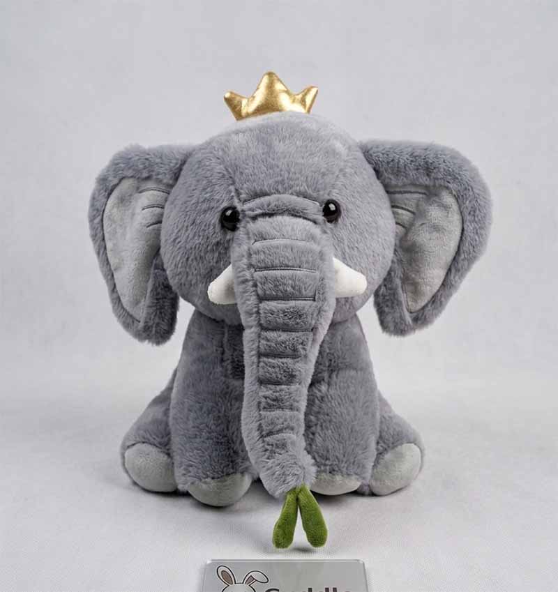 Royal Accessories: Choose between the Grey “Prince” Elephant with a gold crown or the Pink “Princess” Elephant with a soft fabric bow.