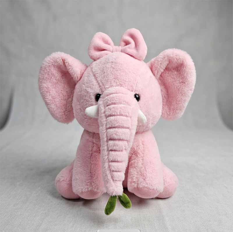 Unique Trunk Detail: Features a long, curved trunk with a cute green leaf accent at the tip for added playfulness.